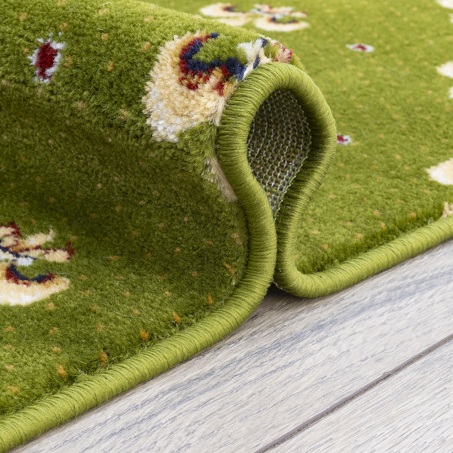 Ковер выполнен в нежных и гармоничных оттенках: кремовом, бежевом, зеленом и темно-зеленом. Эти цвета легко впишутся в любой интерьер, дополнив как современный, так и классический стиль.