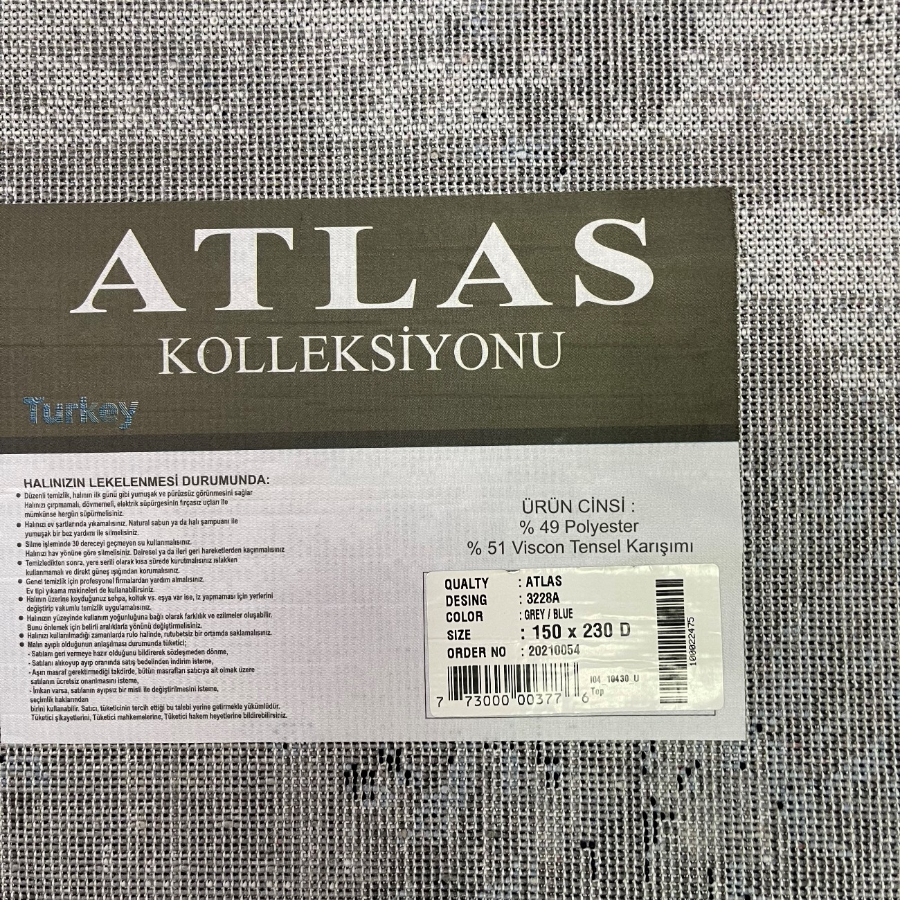 Прямоугольный ковёр Atlas 3228A_GREY_BLUE — стильное и доступное решение для современного интерьера. Турецкое качество по привлекательной цене: рисунок 3228A добавляет изящную фактуру, а сочетание серого и бирюзового оттенков привносит свежесть и спокойствие в комнату.