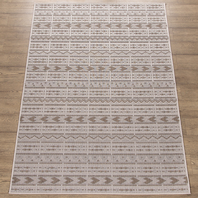 Ковёр выполнен в нежном бежевом цвете, который легко сочетать с различными цветовыми гаммами. Его тип ворса — без ворса, что делает его уход простым и удобным. Вы сможете наслаждаться чистотой и свежестью в вашем доме, не беспокоясь о сложном уходе за ковровыми покрытиями.