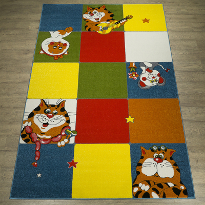 С высотой ворса всего 10 мм ковёр обладает гладкой текстурой, что обеспечивает ему легкость в уходе и долговечность. Разноцветный рисунок 20717 добавит вашему пространству яркости и живости, идеально вписываясь в атмосферу гостиной, спальни или детской комнаты.