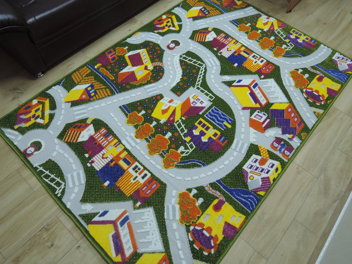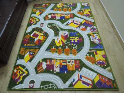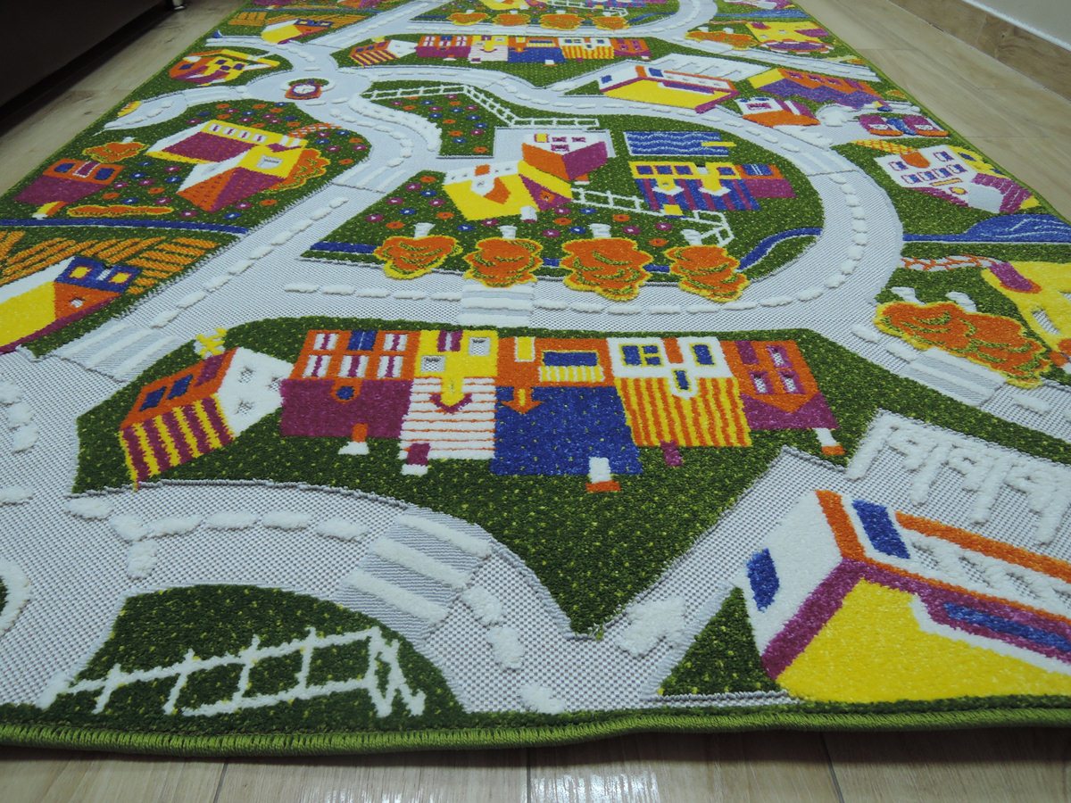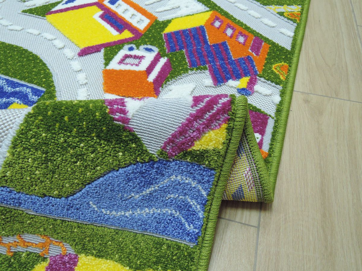 Ворс разноуровневый, высота 8 мм: это придаёт ковру выразительную текстуру и комфорт при ходьбе. Цвета — зелёный и разноцветный — легко впишутся в разные стили и оживят комнату.