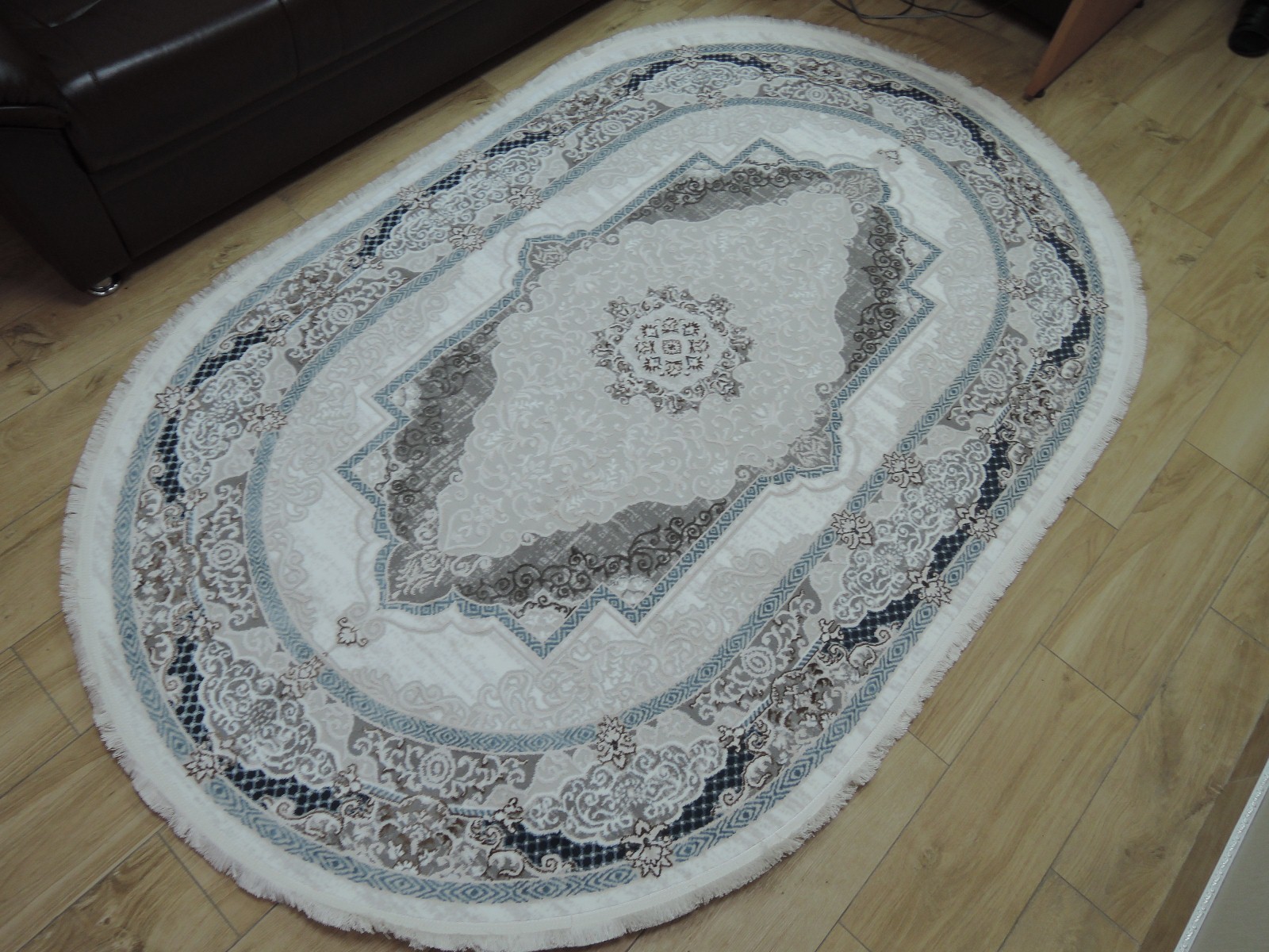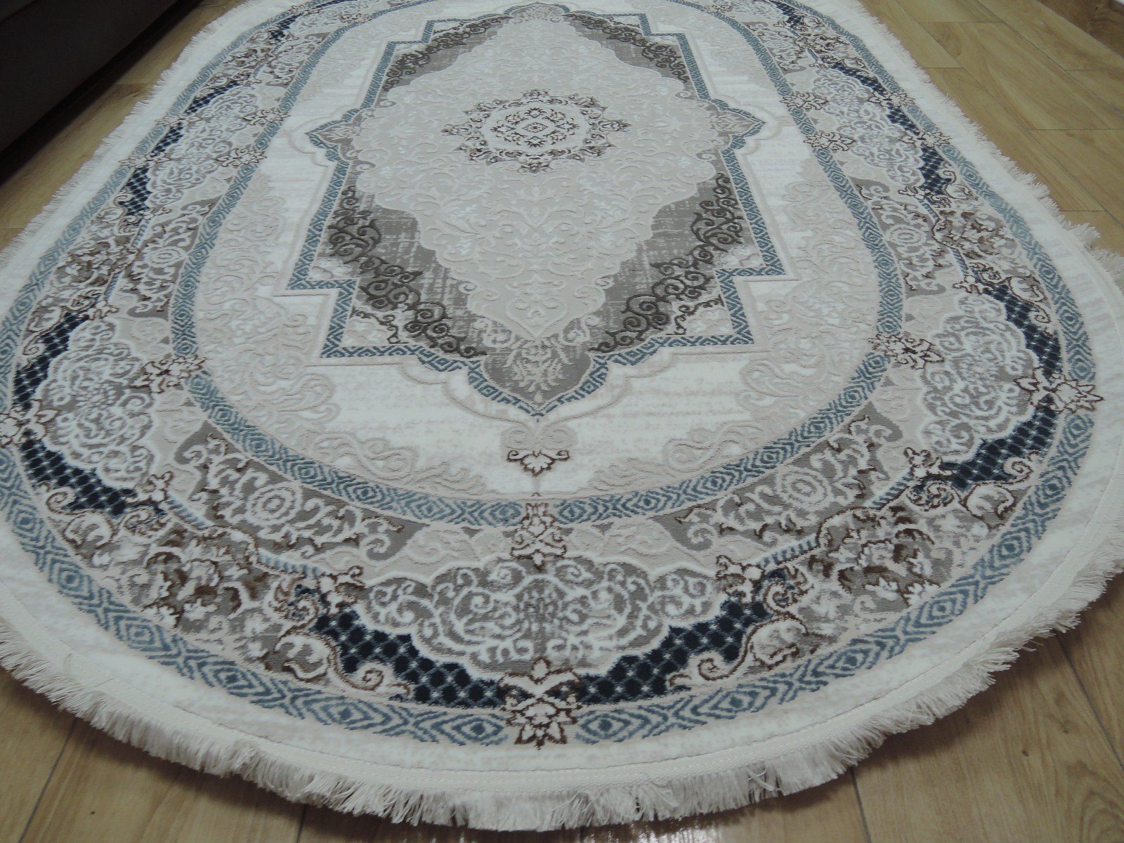 Овальный ковёр Palmira 2489A_CREAM_CREAM — идеальное сочетание сдержанной элегантности и ярких акцентов. Кремовый и бирюзовый цвета создают стильный рисунок 2489A, а производство в Турции гарантирует качество. Отличный выбор, если хотите купить недорого и одновременно получить долговечный аксессуар для дома.