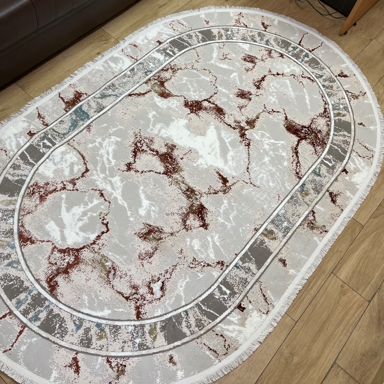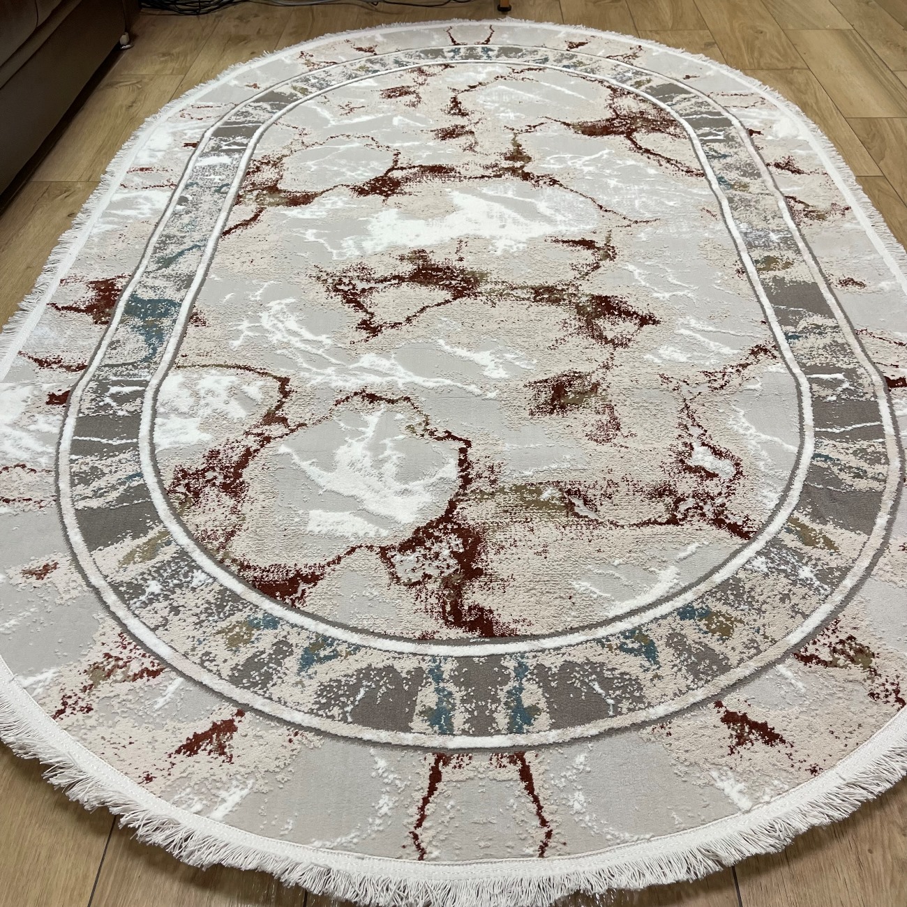 Овальный ковёр Palmira 3941A_BROWN_BROWN — стильный и уютный аксессуар для дома. Выполнен в тёплой палитре бежевого и коричневого, легко вписывается в интерьер гостиной, спальни или детской комнаты.