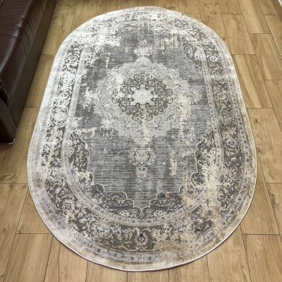 Овальный ковёр Panda BB331A_GREY_C_GREY_C — стильное и практичное решение для дома. Модель из Турции сочетает элегантный рисунок BB331A и современную палитру: кремовый, серый, светло‑серый и золотой, что делает ковёр универсальным для разных интерьеров.
