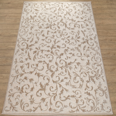 Высота ворса составляет 8 мм, а разноуровневый тип ворса создает эффект объема и придаёт ковру индивидуальность. Оттенки кремового и бежевого цветов позволят легко вписать его в интерьер как гостиной, так и спальни или детской комнаты, добавляя уют и тепло в ваше пространство.