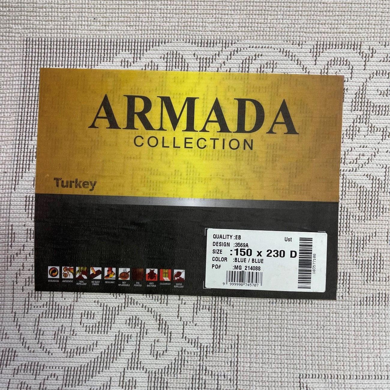 Разноуровневый ворс с высотой 9 мм придаёт изделию выразительную текстуру и мягкость под шагом, сохраняя при этом аккуратный профиль. Рисунок 3569A гармонично смотрится как в классических, так и в современных пространствах.
