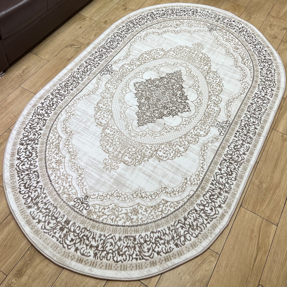 Овальный ковёр Roma 5026B_BEIGE_CREAM — стильное и практичное решение для дома. Нежные кремовые и бежевые оттенки создают спокойную, уютную атмосферу и легко впишутся в любой интерьер. Производство — Турция, цена — доступная, можно купить недорого.