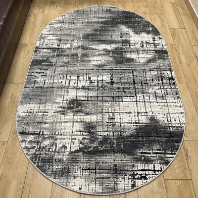 Палитра — кремовый, серый, светло‑серый, белый и чёрный — делает ковёр универсальным для интерьеров в любом стиле. Овальная форма смягчает пространство и прекрасно смотрится в гостиной, спальне или детской комнате.